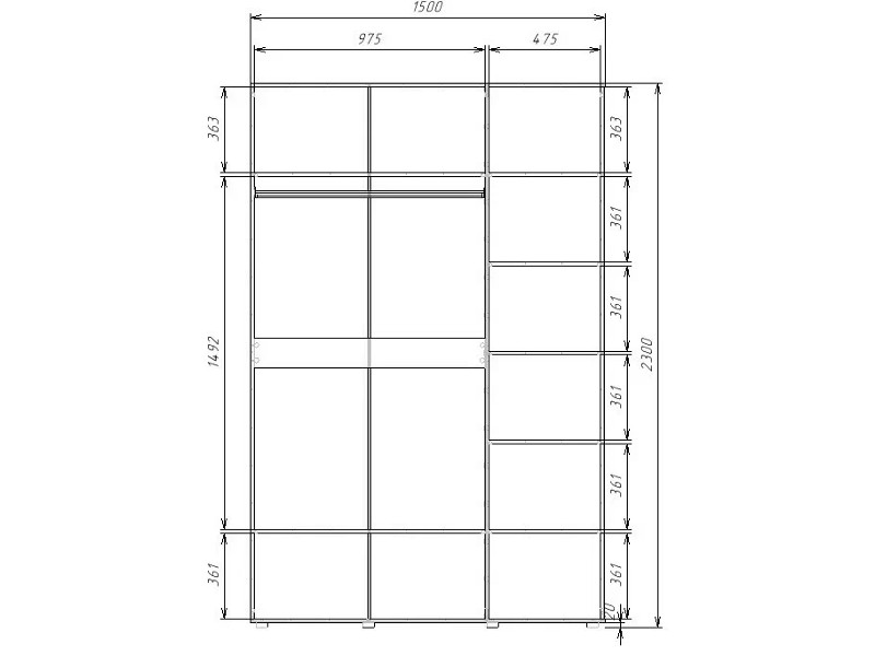 - Шкаф комбинированный с полками справа и 1 штангой Гранд ГШК/1-23-15-333