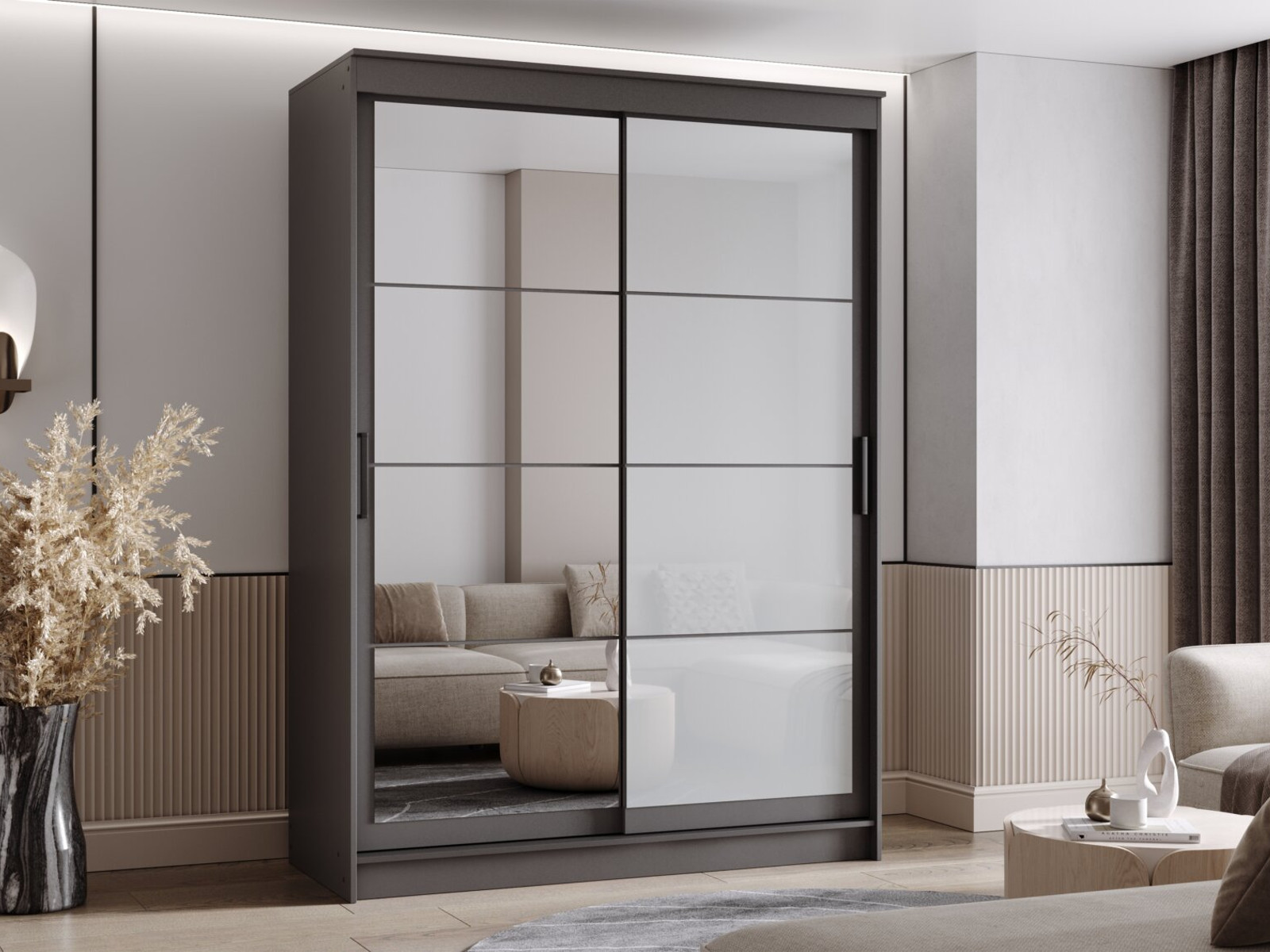 Шкаф-купе Гранд-1 1600 Графит-двери Зеркало-Лакобель белый