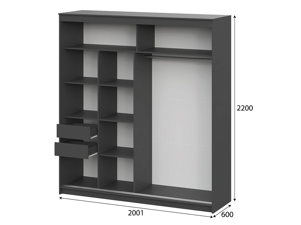 - Шкаф-купе ШКП-3 2.0м Серия 2 МАКС Графит серый