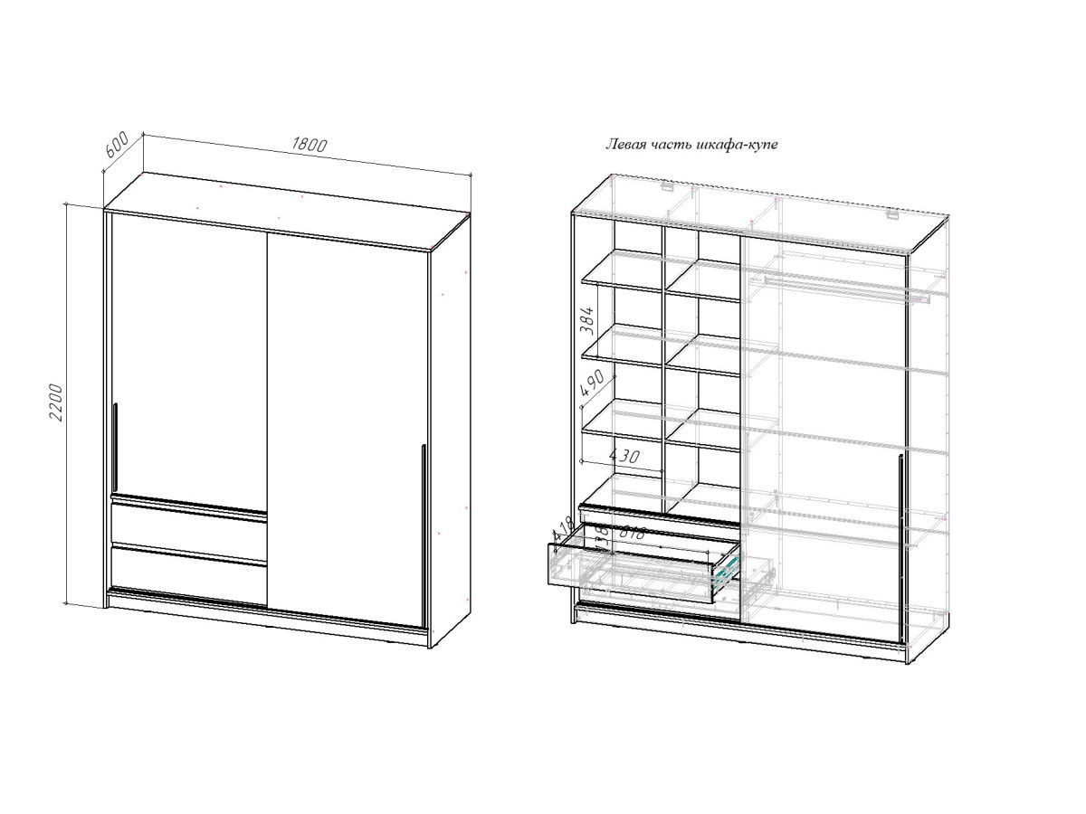 Габариты: Д.1800 х В.2200 х Г.600 мм