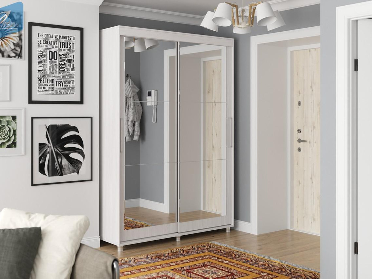 - Шкаф-купе Комфорт 12 Прайм c прямоугольным зеркалом 1500 ясень