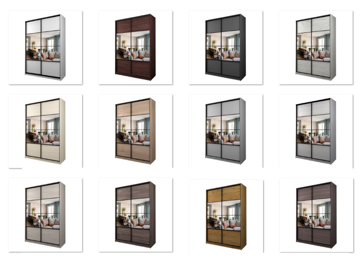 - 2 двери верхняя и нижняя вставка – ДСП 10 мм, две центральные – зеркало серебро.