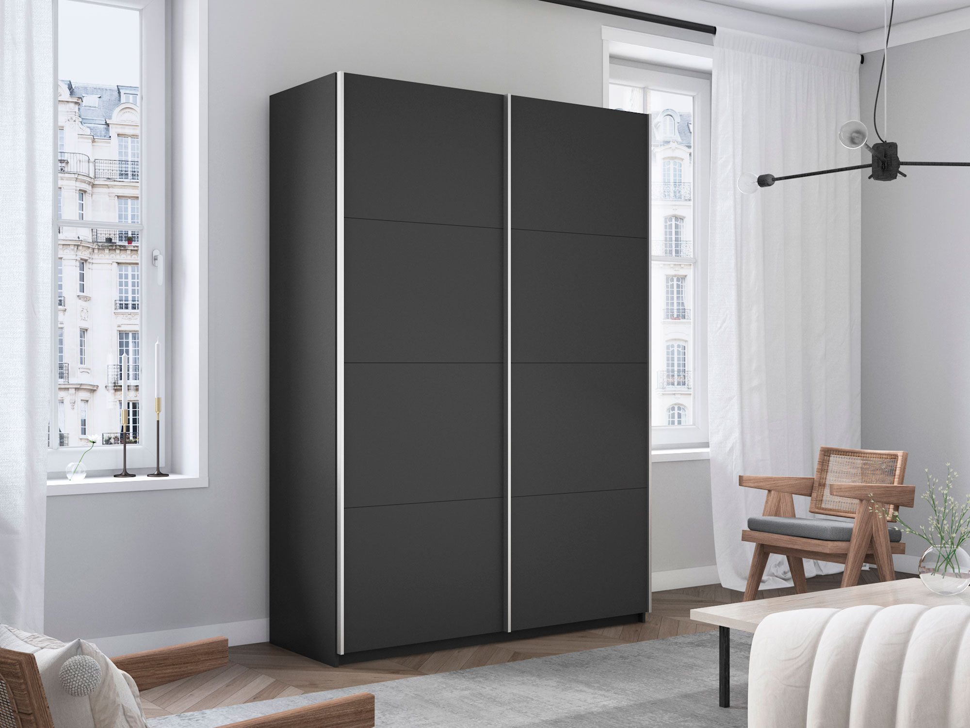 - Усиленная навесная система дверей помогает ходовому профилю выдерживать высокие нагрузки, а также сохраняет полезную площадь внутри шкафа, благодаря установке снаружи корпуса