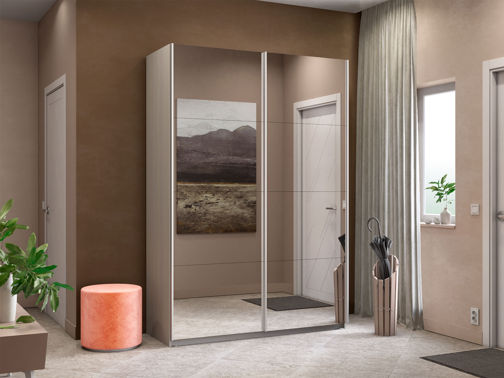 - Шкаф-купе Прайм 2-х дверный 1600 два зеркала Ясень Анкор Светлый