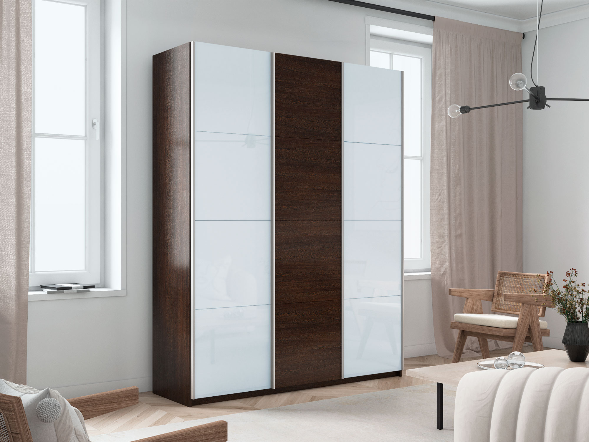 - Шкаф-купе Прайм 3-х дверный 1800 два Стекла Белые/ДСП Венге