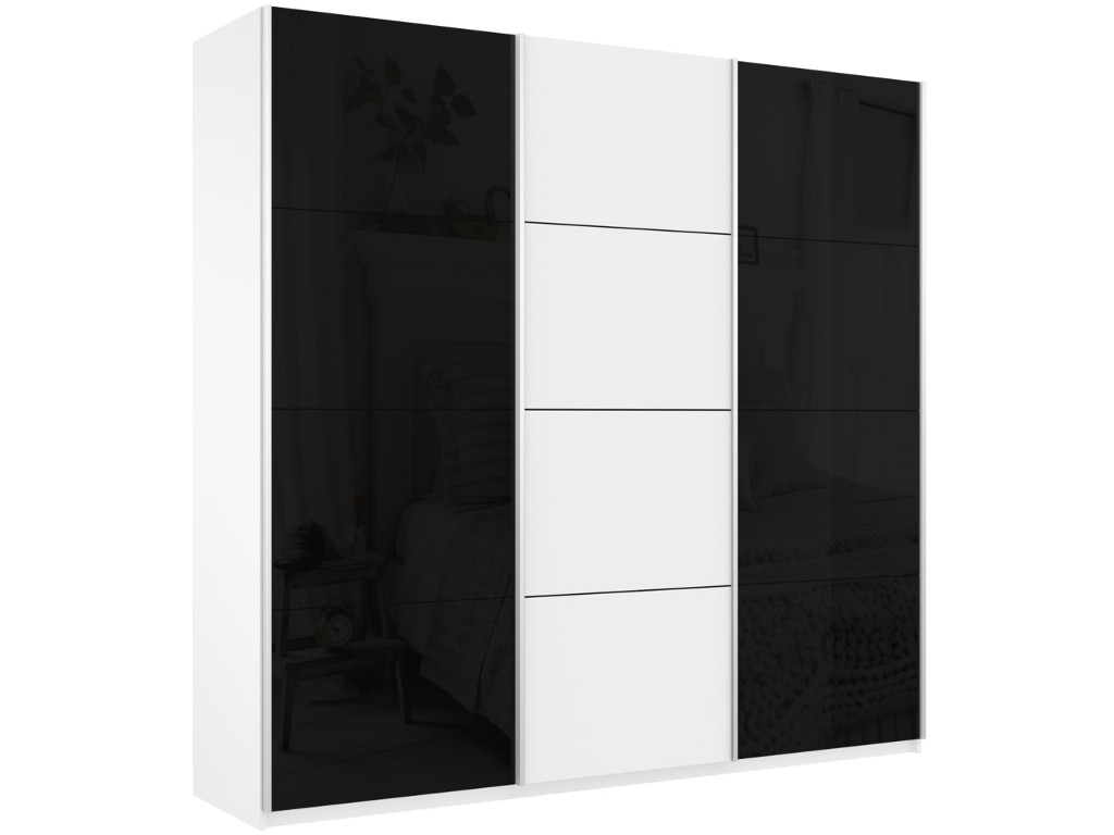 - Шкаф-купе Прайм 3-х дверный 1800 два Стекла Черные/ДСП Белый Снег