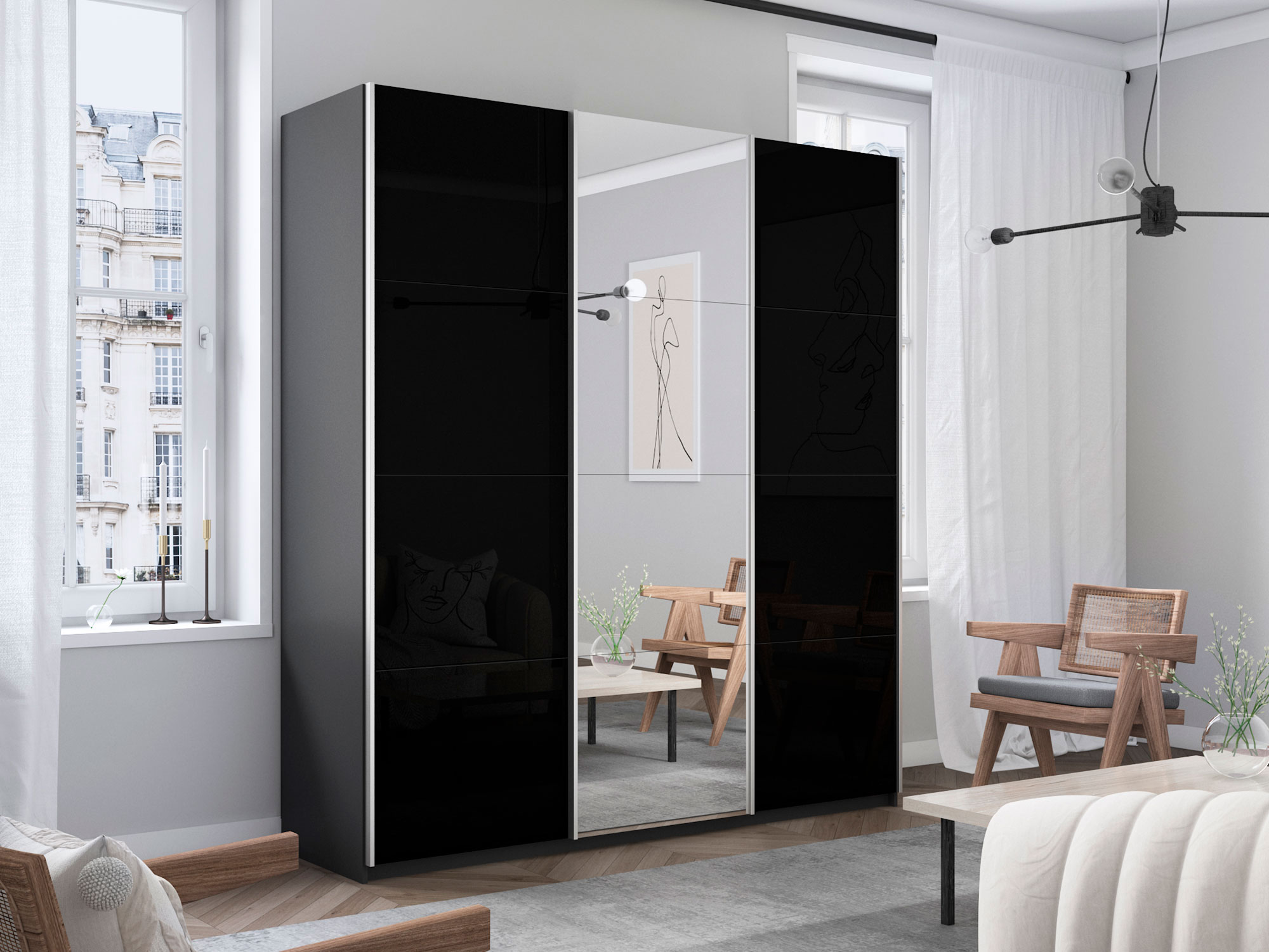 Материал фасада: Стекло (Черное)/Зеркало/Стекло (Черное)