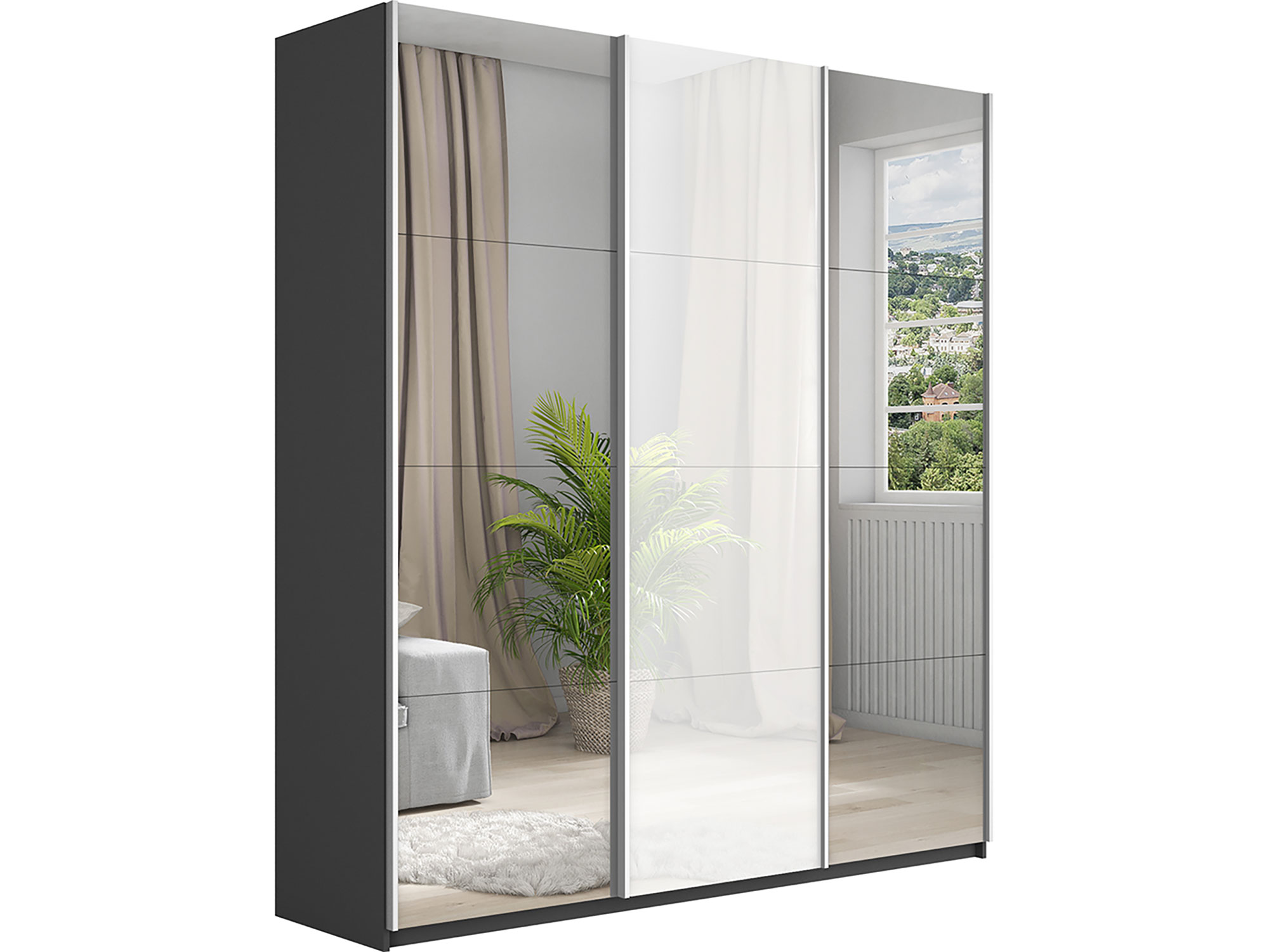 Шкаф-купе Прайм 3-х дверный 1800 Зеркало/Стекло Белое/Зеркало Серый Диамант