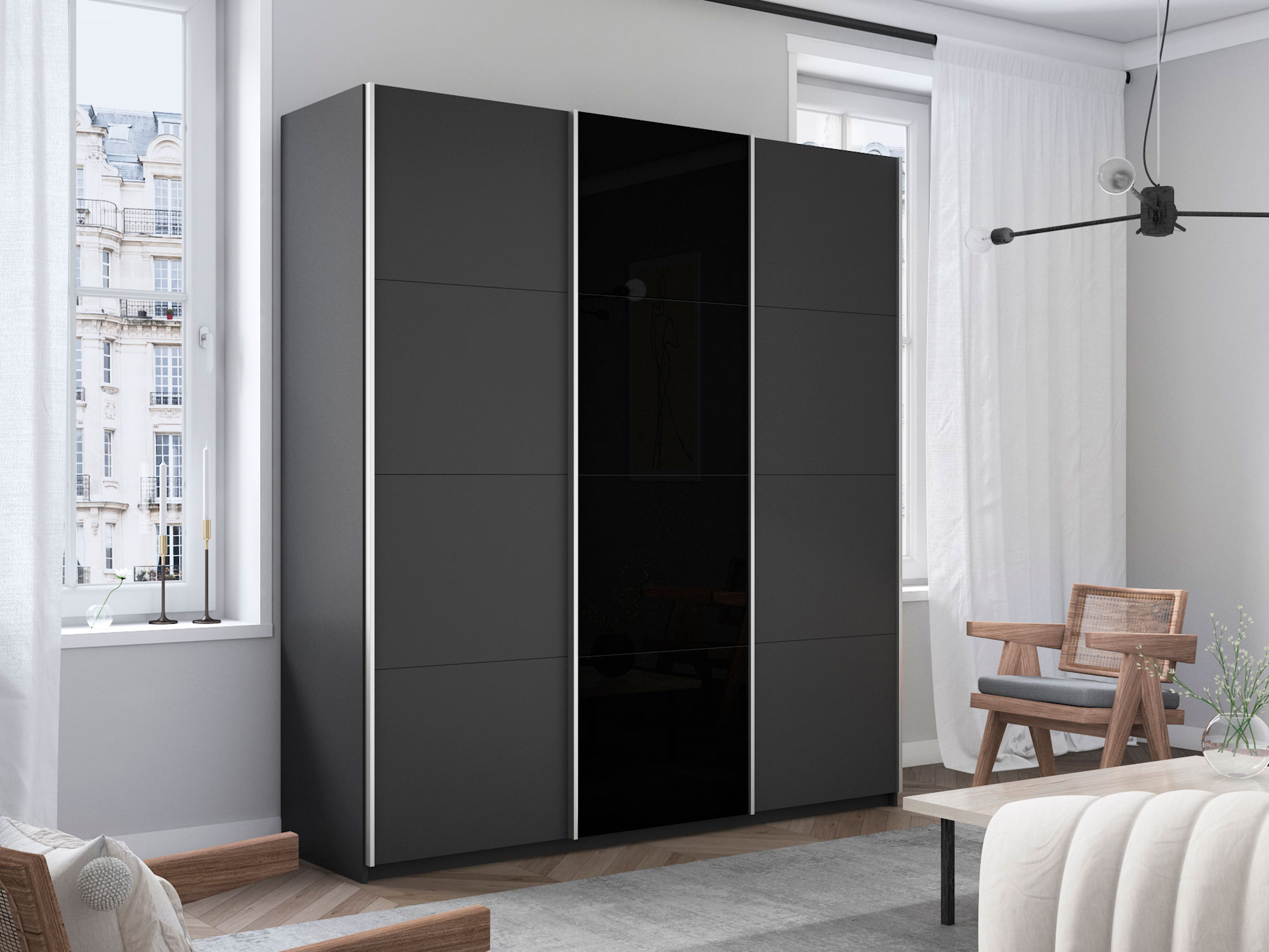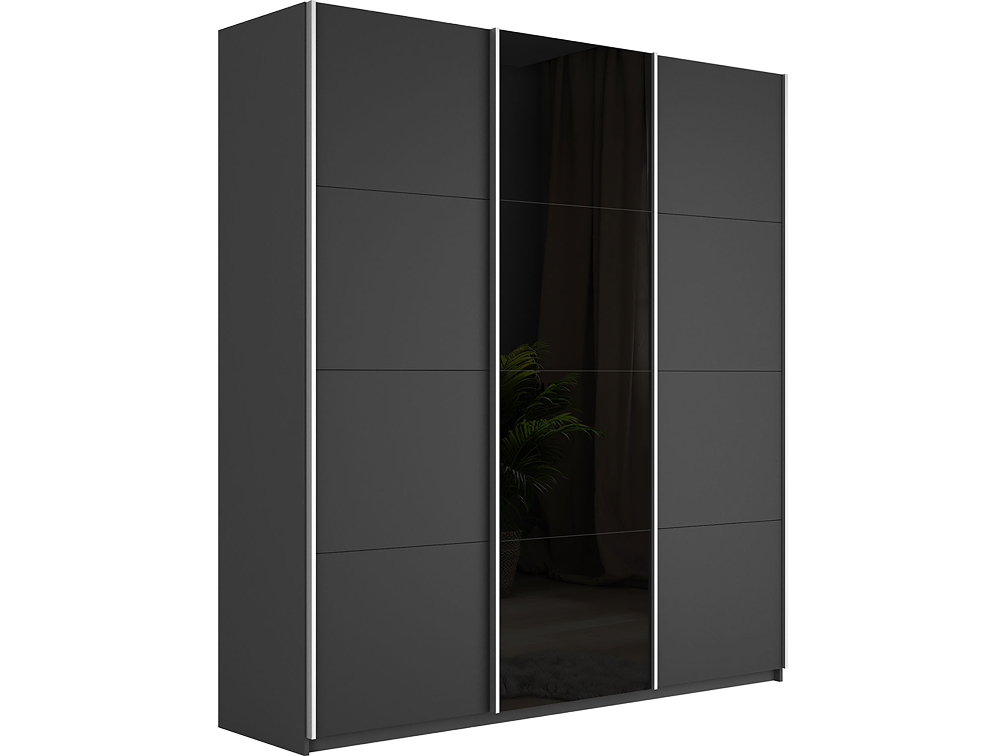 - Шкаф-купе Прайм 3-х дверный 2100 ДСП/Стекло Черное/ДСП Серый Диамант