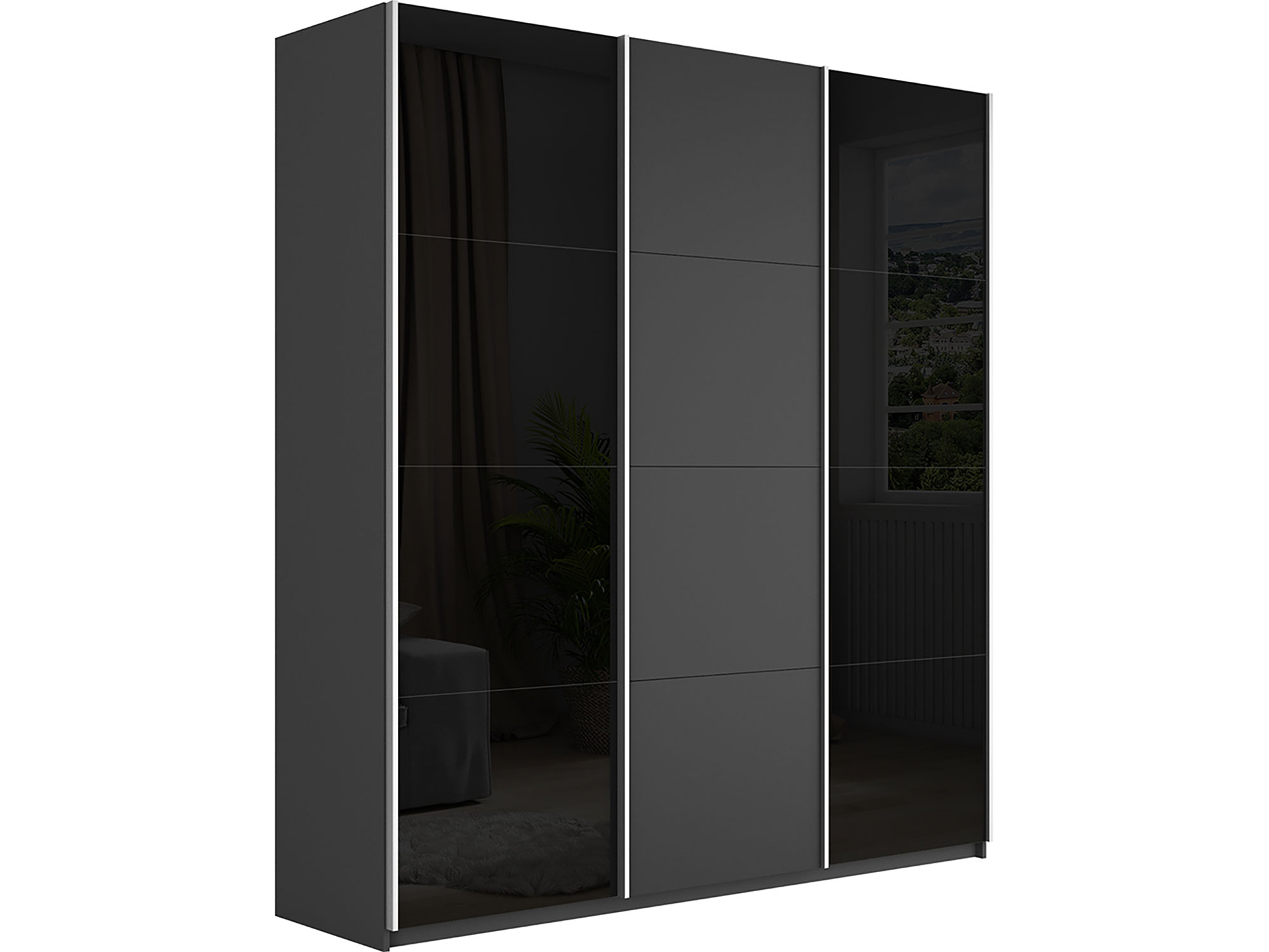 - Шкаф-купе Прайм 3-х дверный 2100 два Стекла Черные/ДСП Серый Диамант