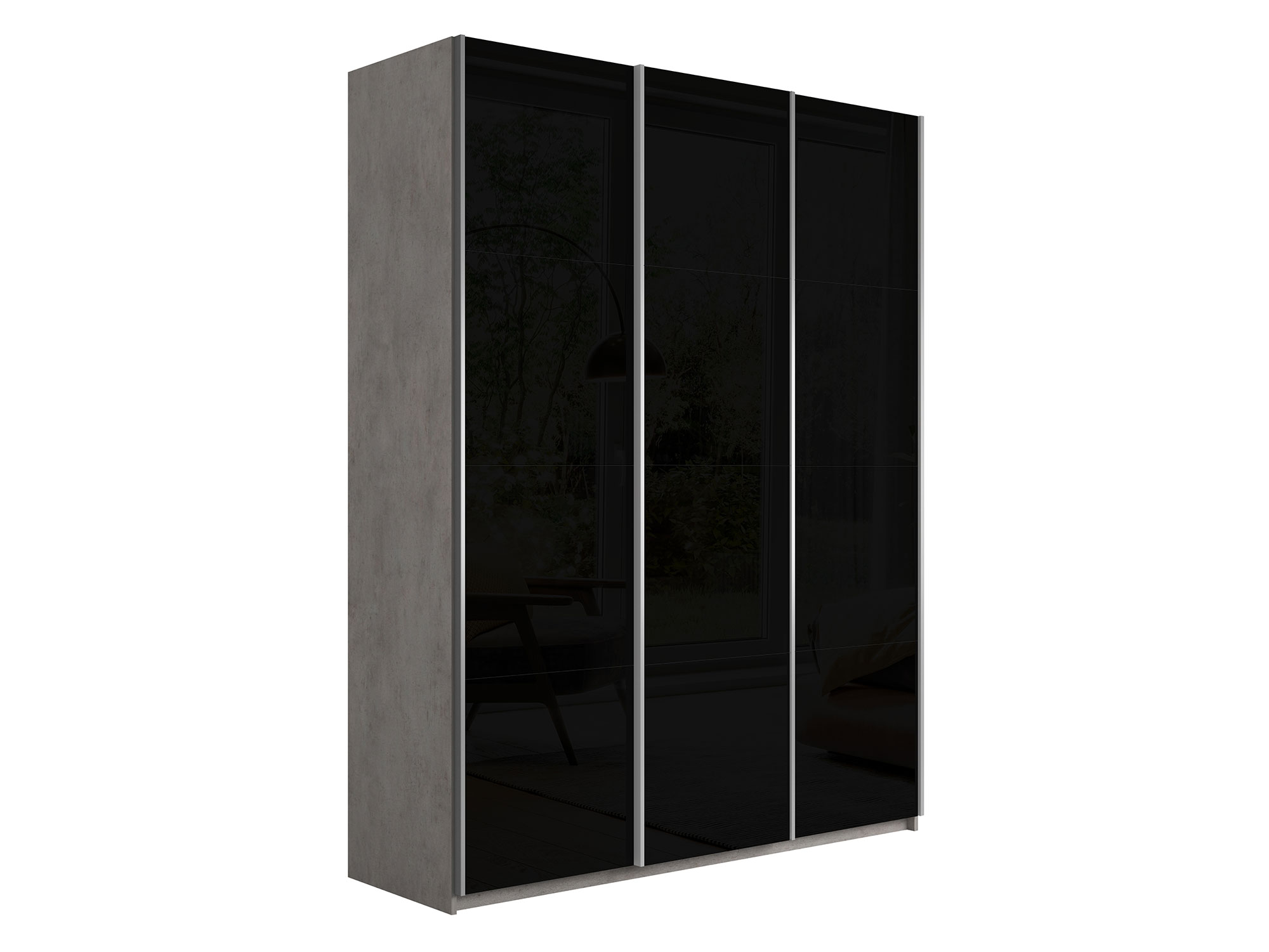 Шкаф-купе Прайм 3-х дверный 2100 три стекла черные Бетон