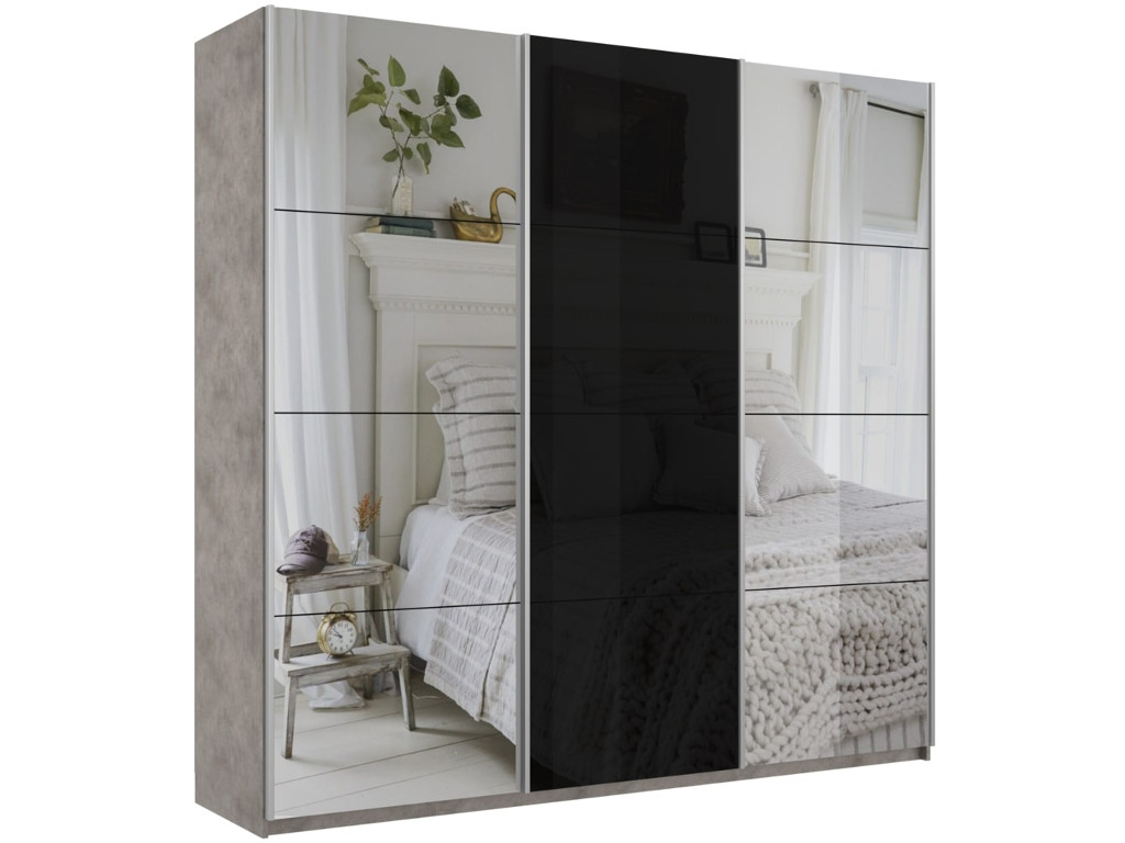 Шкаф-купе Прайм 3-х дверный 2100 Зеркало/Стекло Черное/Зеркало Бетон