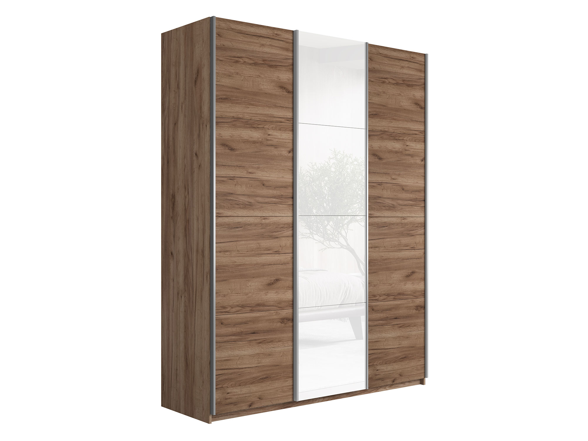 Шкаф-купе Прайм Широкий 3-х дверный два ДСП/Стекло Белое Крафт табачный