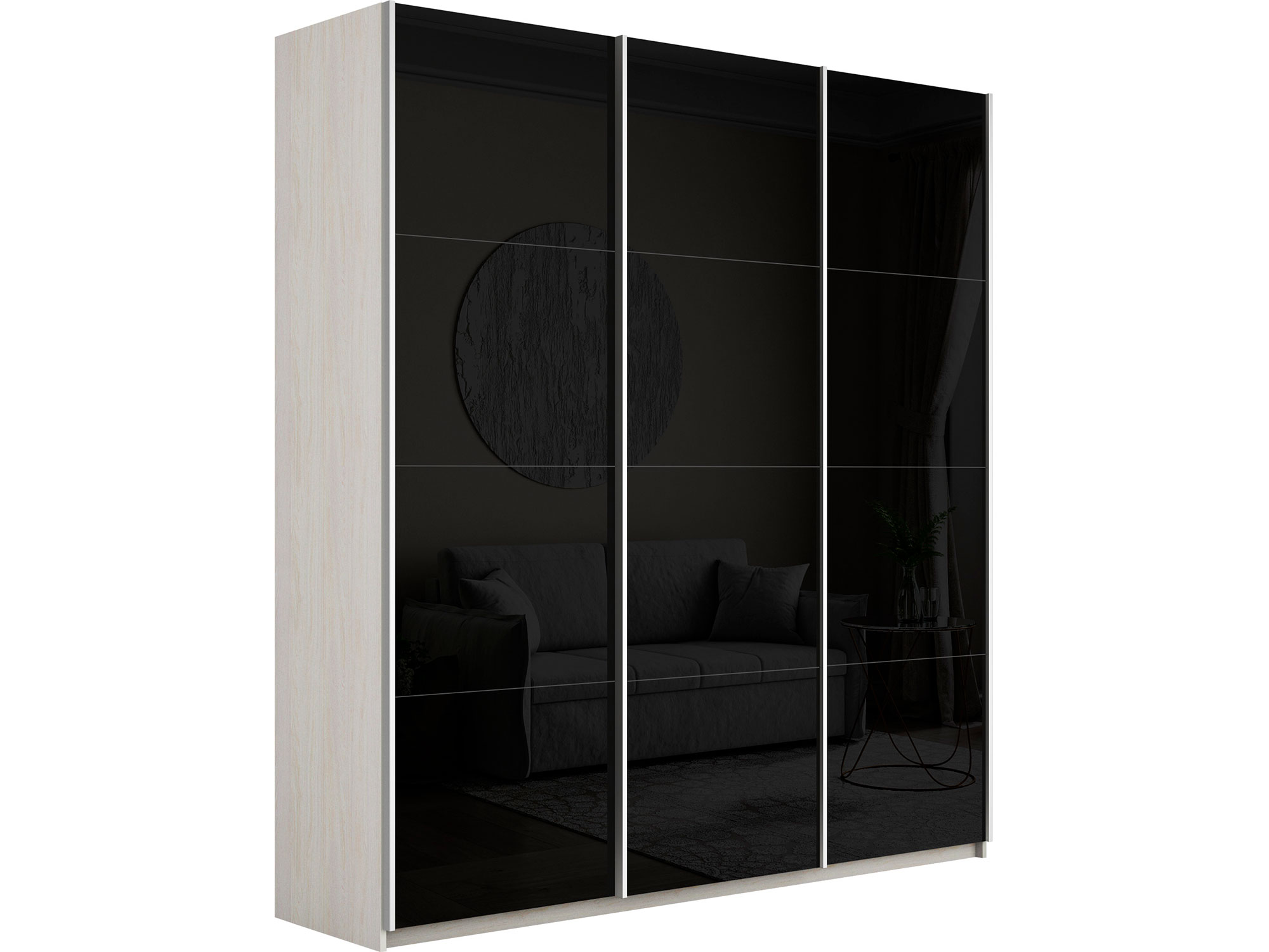 - Шкаф-купе Прайм Широкий 3-х дверный три черных стекла Ясень Анкор Светлый