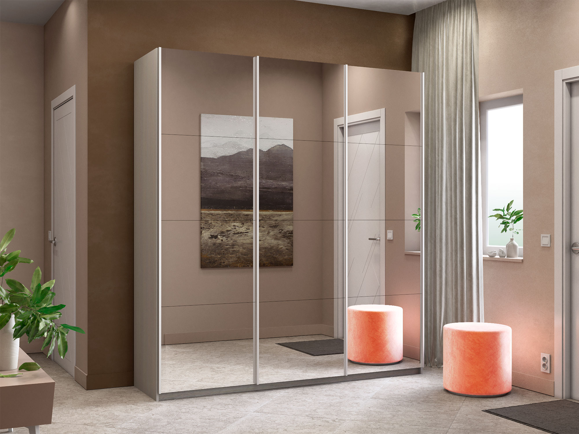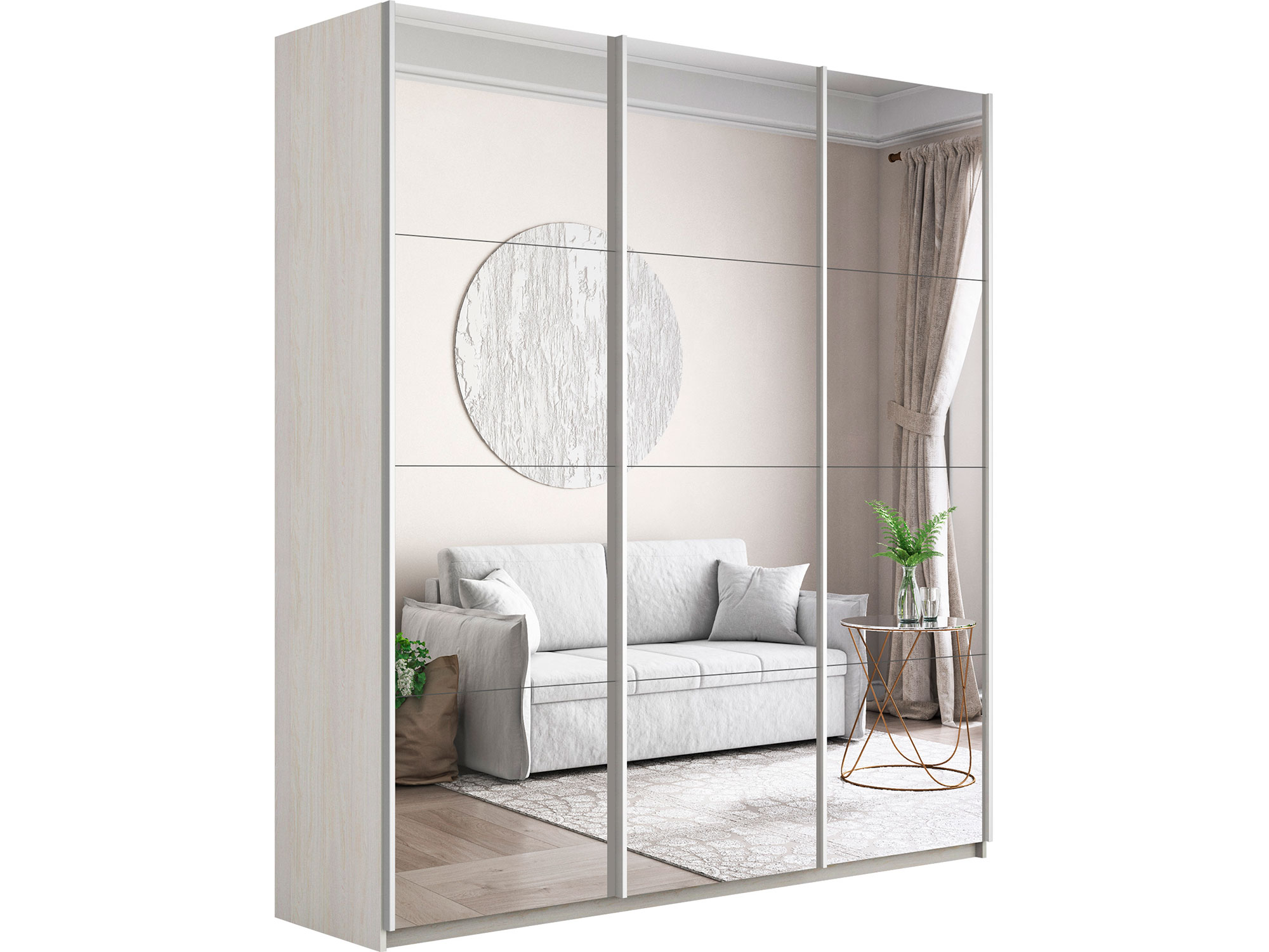 - Шкаф-купе Прайм Широкий 3-х дверный три зеркала Ясень Анкор Светлый