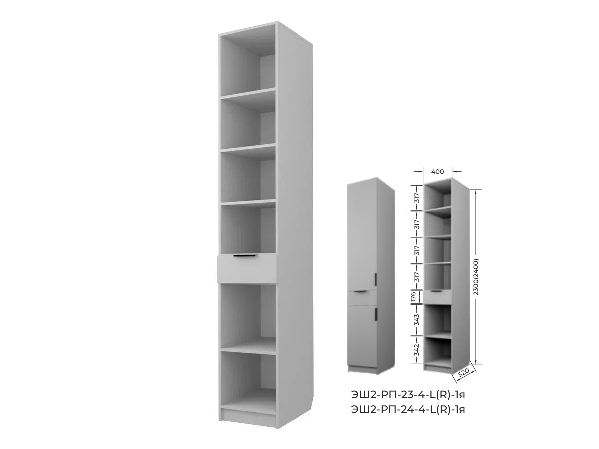 Шкаф с 1 ящиком с полками Экон ЭШ2-РП-24-4-R-1я с зеркалом