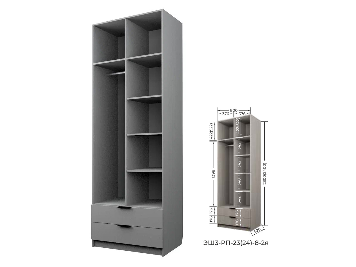 Комплект: ЭШ3-РП-23-8-2я, Шкаф с 2 ящиками + ЗС-23-2я,Зеркало для шкафов ЭШ 2300 мм