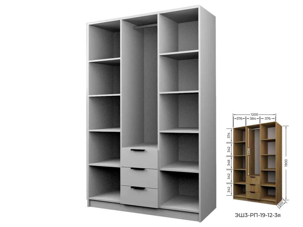Шкаф с 3 ящиками Экон ЭШ3-РП-19-12-3я три зеркала