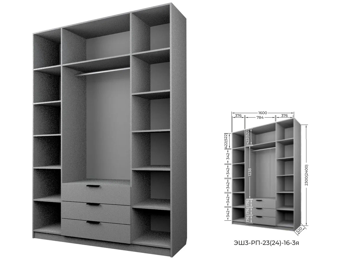Комплект: ЭШ3-РП-23-16-3я, Шкаф с 3 ящиками + два ЗС-23-3я,Зеркало для шкафов ЭШ 2300 мм + два ЗС-23,Зеркало для шкафов ЭШ 2300 мм