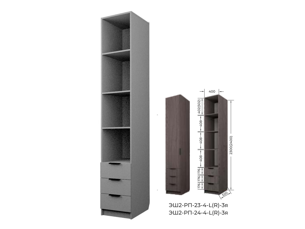 Шкаф с 3 ящиками с полками Экон ЭШ2-РП-24-4-R-3я