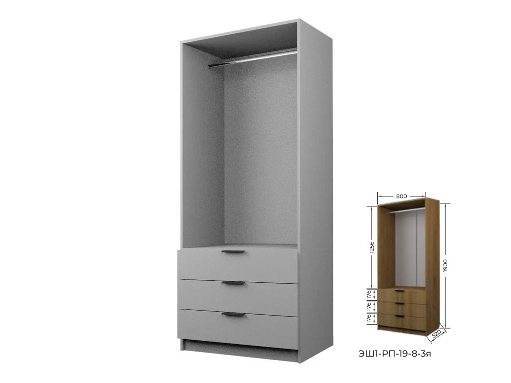 Шкаф с 3 ящиками со штангой Экон ЭШ1-РП-19-8-3я с зеркалами