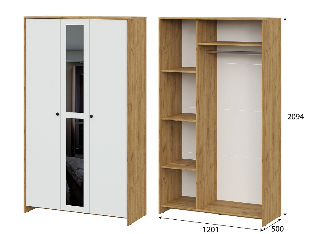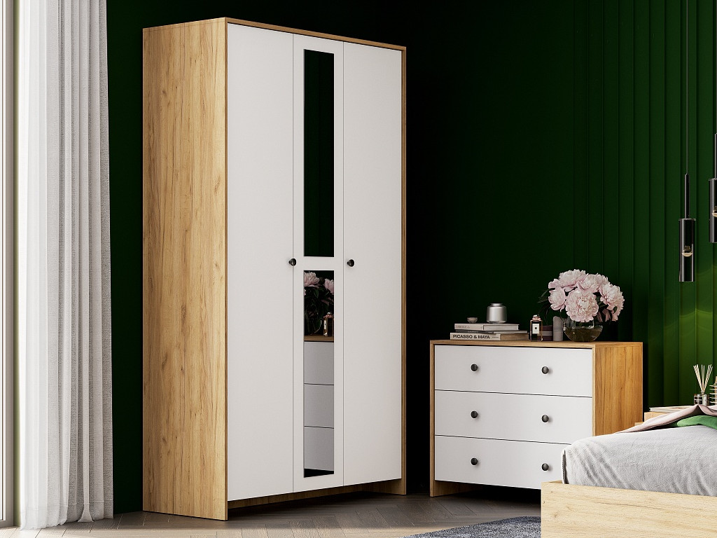 - Шкаф трехстворчатый Дольче Дуб Золотой/Белый