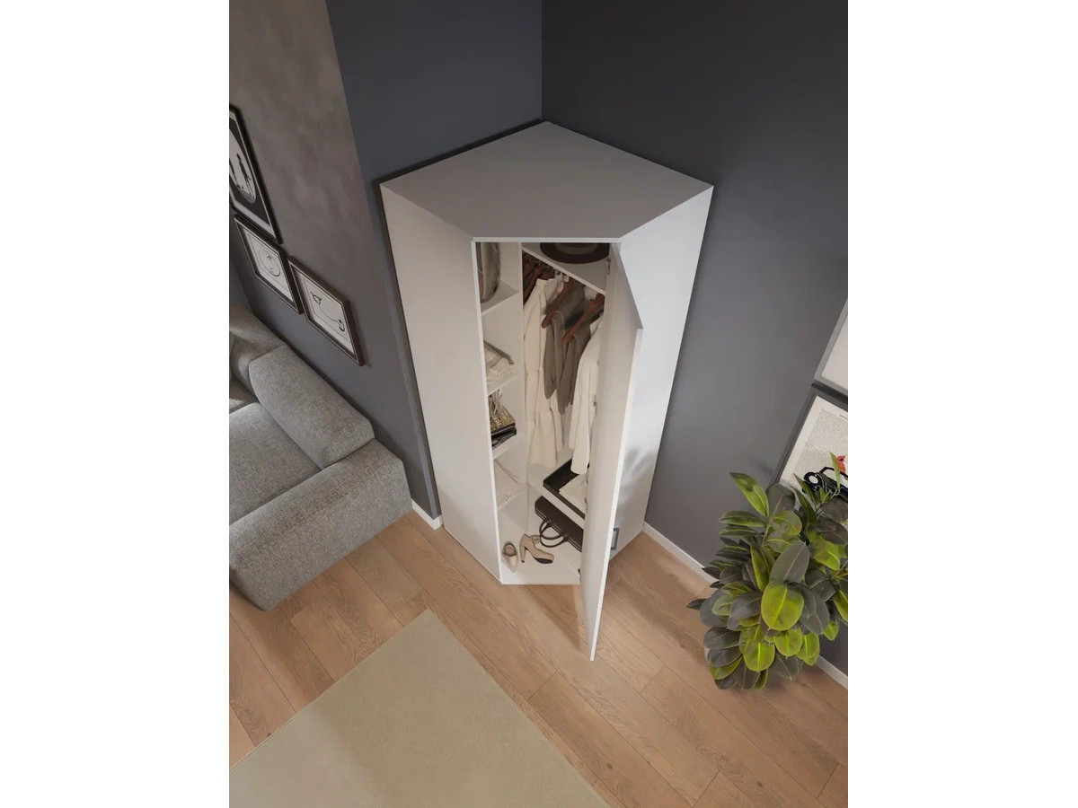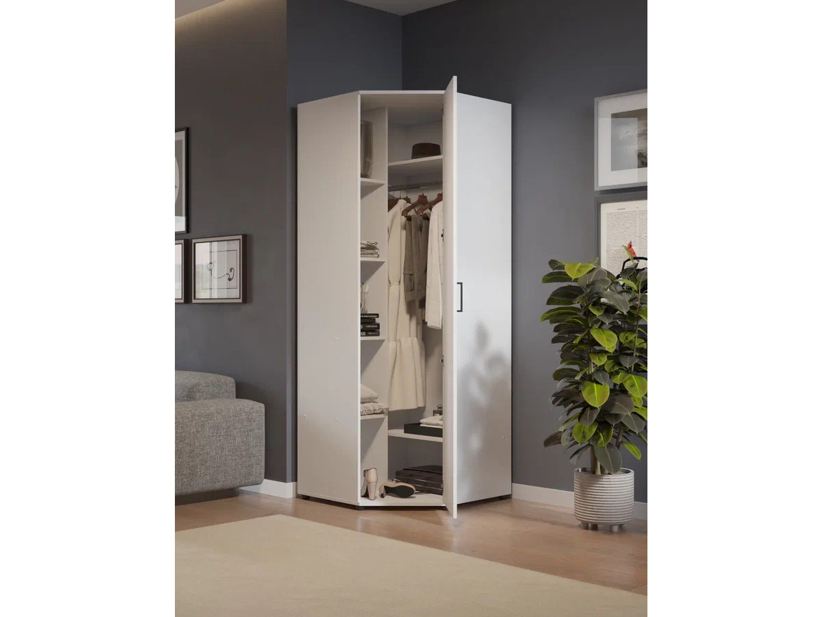 - Шкаф угловой со штангой и полками арт. 557 белый