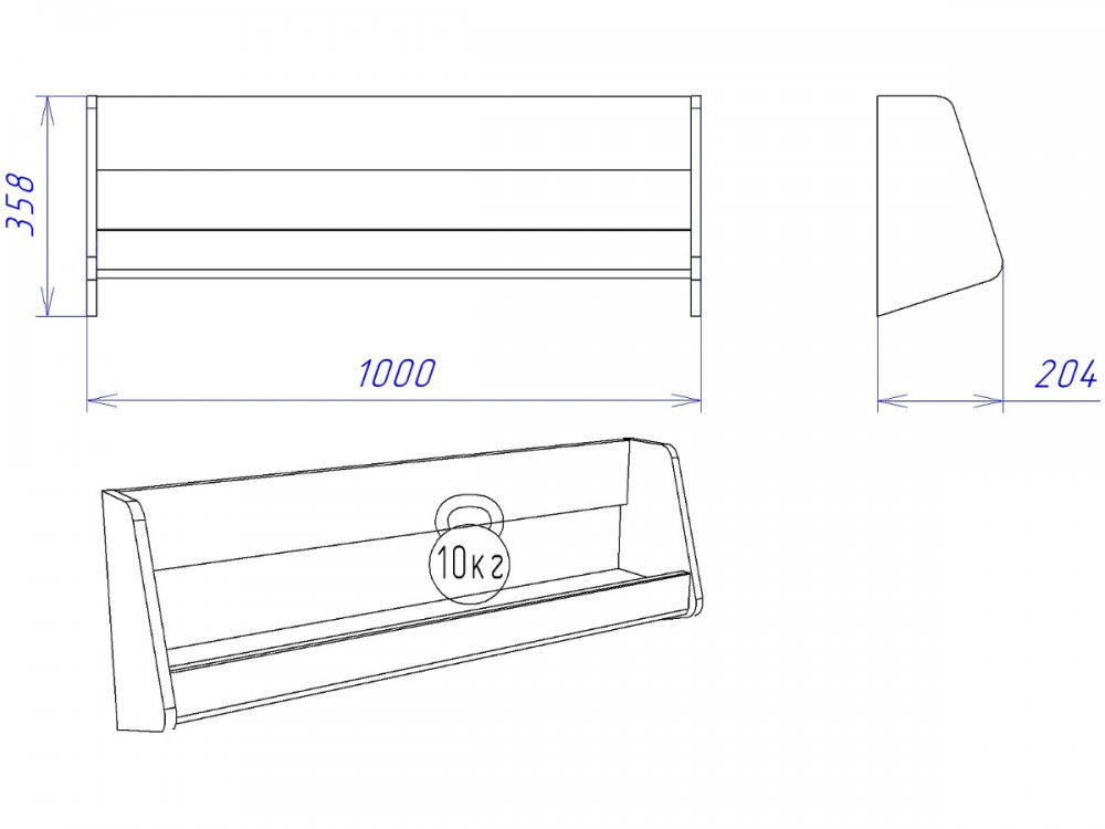 Размер ШхГхВ: 1000*204*359 мм