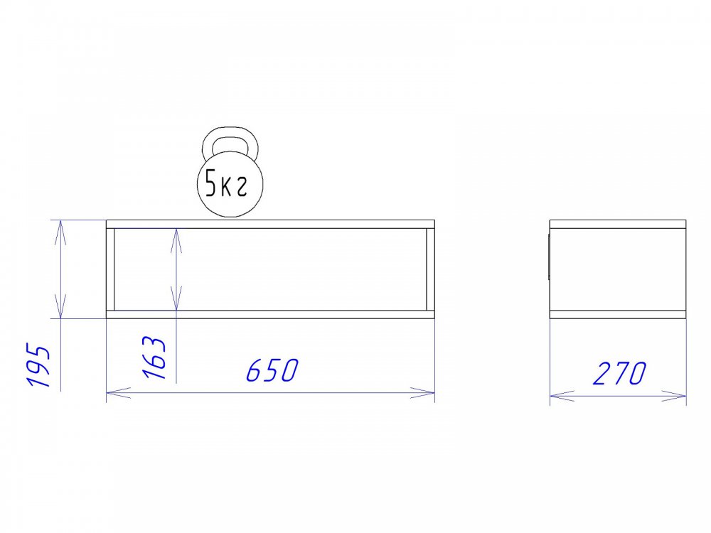 Размер ШхГхВ: 650*270*195 мм