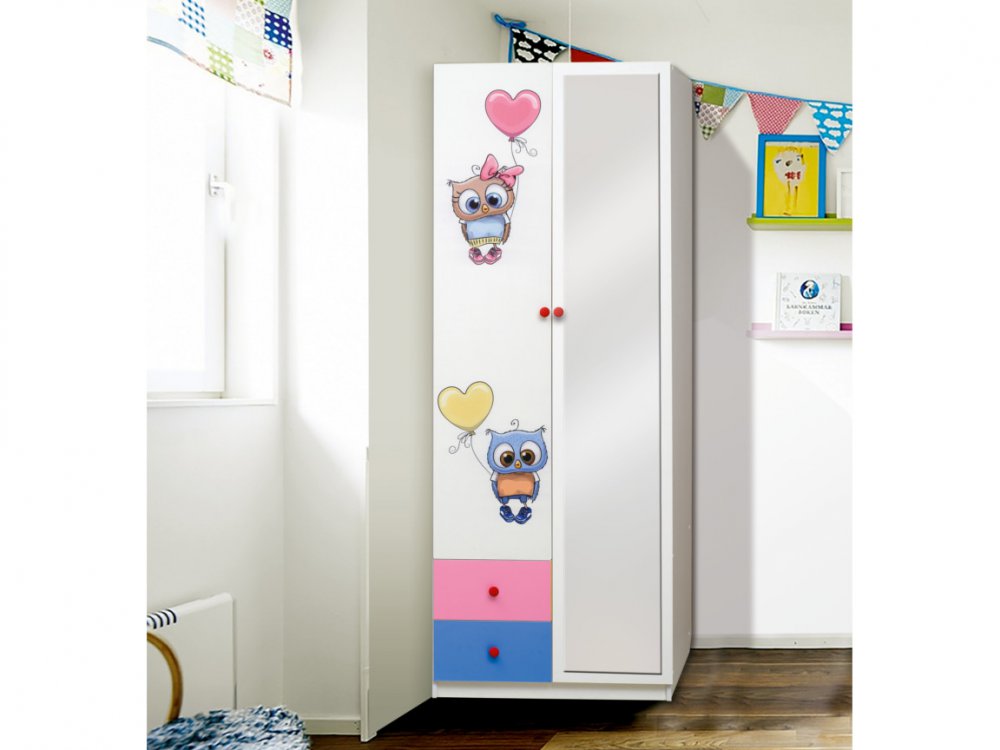 Шкаф двухдверный с зеркалом и фотопечатью Совята 2.2