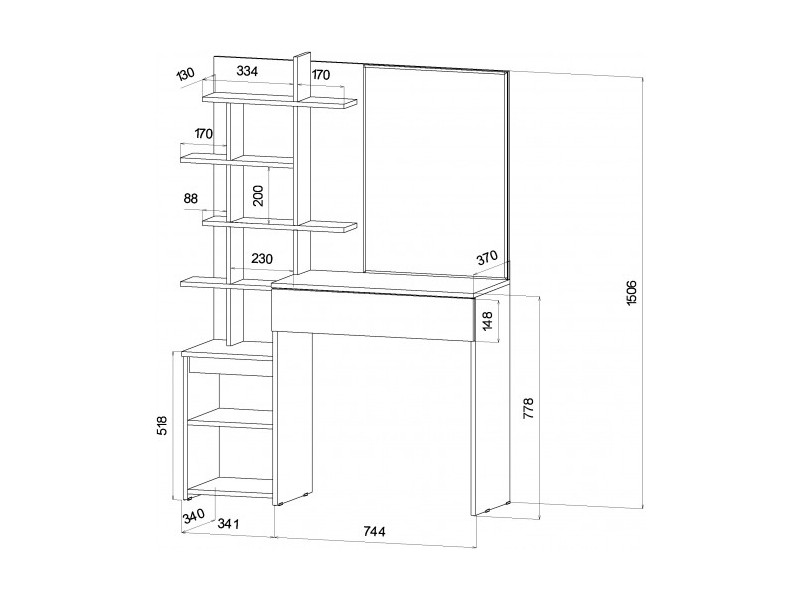 Габариты: 1160(Ш) х 370(Г) х 1538(В) мм.